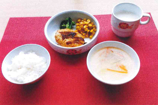 にじいろでは施設内で給食をつくっていますのであたたかい給食を提供しており、給食の時間が近づいてくるといい匂いがしてきて「今日は何かな?」と子ども達も興味津々の様子で聞いてくれます。また、栄養の事や好き嫌いを少しでも減らせるように日々考えて献立を考えています。